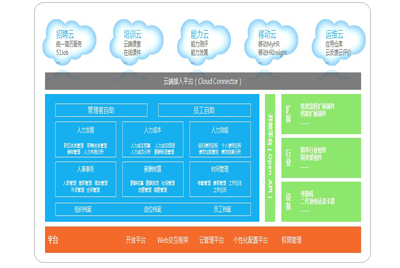 產(chǎn)品基于企業(yè)人力資源創(chuàng)新戰(zhàn)略,通過(guò)專業(yè)的人力資源核心平臺(tái)、社交化的全員自助服務(wù)平臺(tái)以及開(kāi)放的云端應(yīng)用創(chuàng)新,能承接企業(yè)選育用留四大業(yè)務(wù)流程: